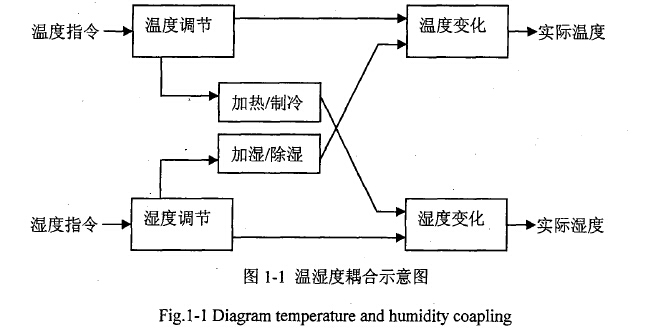 培養箱內部氣流循環控制流程為:培養箱上電后,循環風機就開始運行,循環風機使箱體內的氣流不停的流動,使箱體中的氣流**終達到相同的溫度和濕度。但培養箱是一種非線性禍合滯后系統,控制很容易超調,且溫濕度超過設定值后很難降下來。培養箱溫濕度藕合模型簡圖如圖1一1所示。目前復雜非線性藕合及滯后系統完善有效控制策略的缺乏,導致這類系統的實時有效控制存在很大困難,常規的控制方法通常很難達到要求,無法為生命科學實驗提供穩定可靠的環境條件。