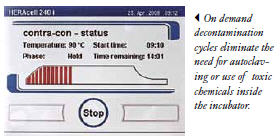 雖然消毒循環不能消除對常規清潔培養箱的需要,但它可以消除對單獨高壓滅菌內部部件的需要,并消除“駐留”污染的風險。