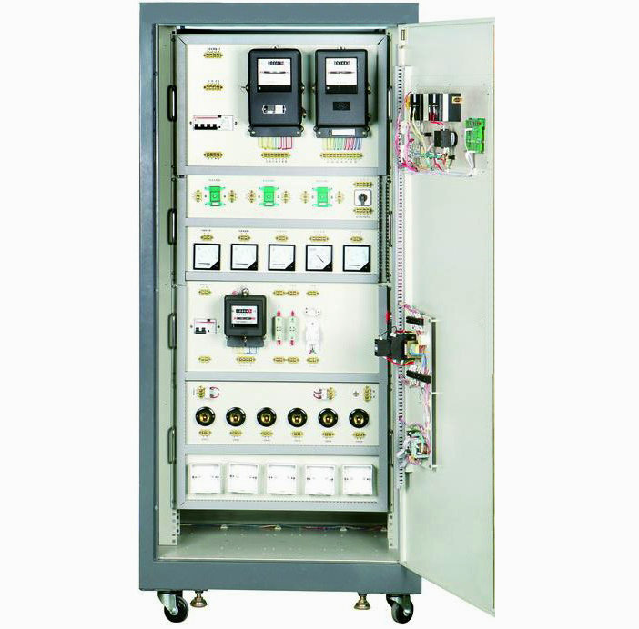 柜內裝有單聯(lián)開關、雙聯(lián)開關、單三相電度表、照明燈、日光燈等各種實訓元器件,且所有器件的接線都在接線端子排上進行接線,從而避免了因長時間在器件本身進行走線而導致其損壞,通過走線槽進行工藝布線。