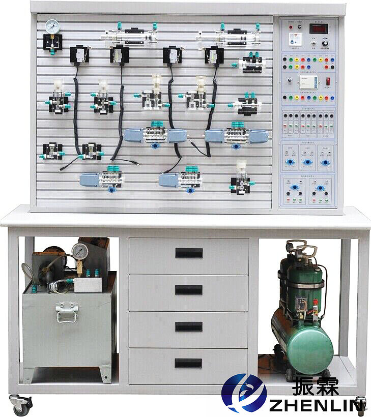 該實(shí)驗(yàn)臺(tái)為鐵質(zhì)雙層亞光密紋噴塑結(jié)構(gòu)。美觀大方,堅(jiān)固耐用,操作方便?;九渲脼椋簹鈩?dòng)實(shí)驗(yàn)元件1;氣動(dòng)實(shí)驗(yàn)繼電器控制模塊1套;低噪音空壓機(jī)1臺(tái);液壓實(shí)驗(yàn)元件1套,液壓實(shí)驗(yàn)繼電器控制模塊1套;液壓實(shí)驗(yàn)泵站1臺(tái)(裝在實(shí)驗(yàn)臺(tái)內(nèi))。(計(jì)算機(jī)根據(jù)學(xué)校要求另行配置)