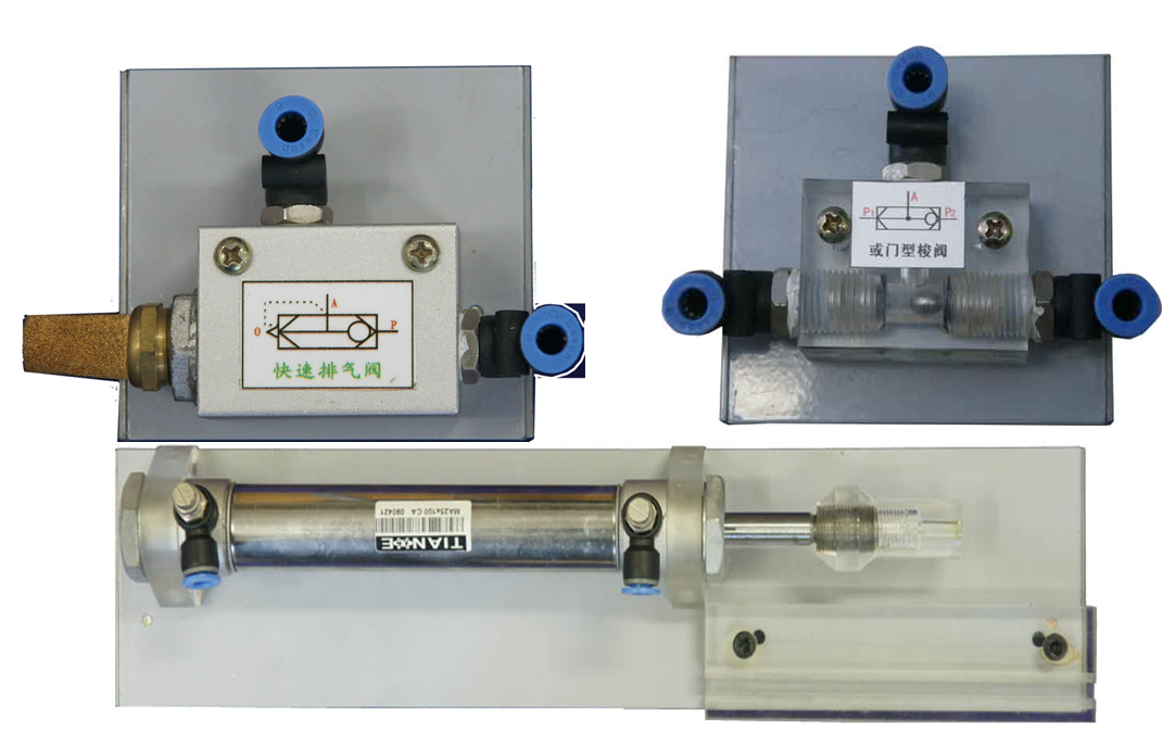2、實驗氣動元件均裝有鋁制專用底板,實驗時組裝快捷,方便。