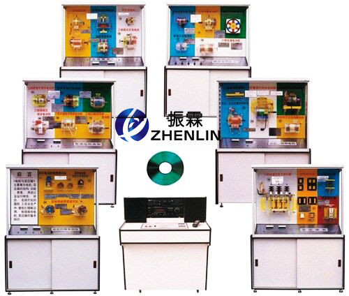 電機(jī)與變壓器陳列柜是根據(jù)大、中專院校,按《電力學(xué)》、《電力拖動》、電機(jī)控制》、《電機(jī)修理》等教材設(shè)計一套電化設(shè)備,品種多,功能齊全,學(xué)生可根據(jù)教材需要觀察、分析,大大提高分析電機(jī)原理的能力,本陳列柜共分6柜及一臺電腦解說控制臺。有第一代和第二代兩種形式。