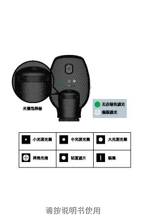 檢眼鏡:六種光斑可選擇:小光斑、中光斑、大光斑、網(wǎng)格片、裂隙片、鈷藍(lán)片。配合使用:偏振濾光、無赤,綠色濾光,屈光度范圍:-25~40D,采用軸點(diǎn)光學(xué)系統(tǒng)無需擴(kuò)瞳,無需暗室,并提供25°視角